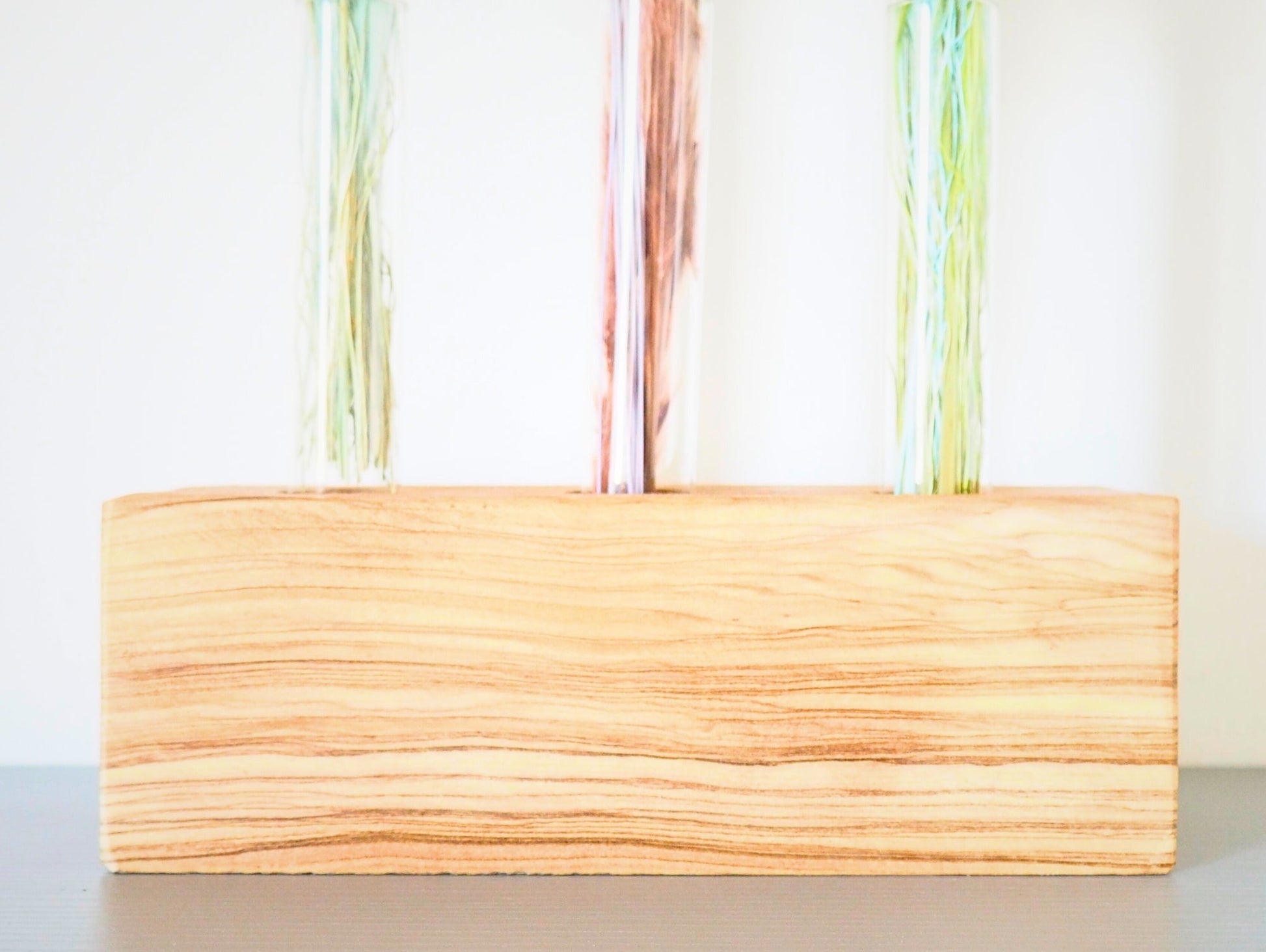 Una Base squadrata che ospita tre composizioni di fiori o talee.