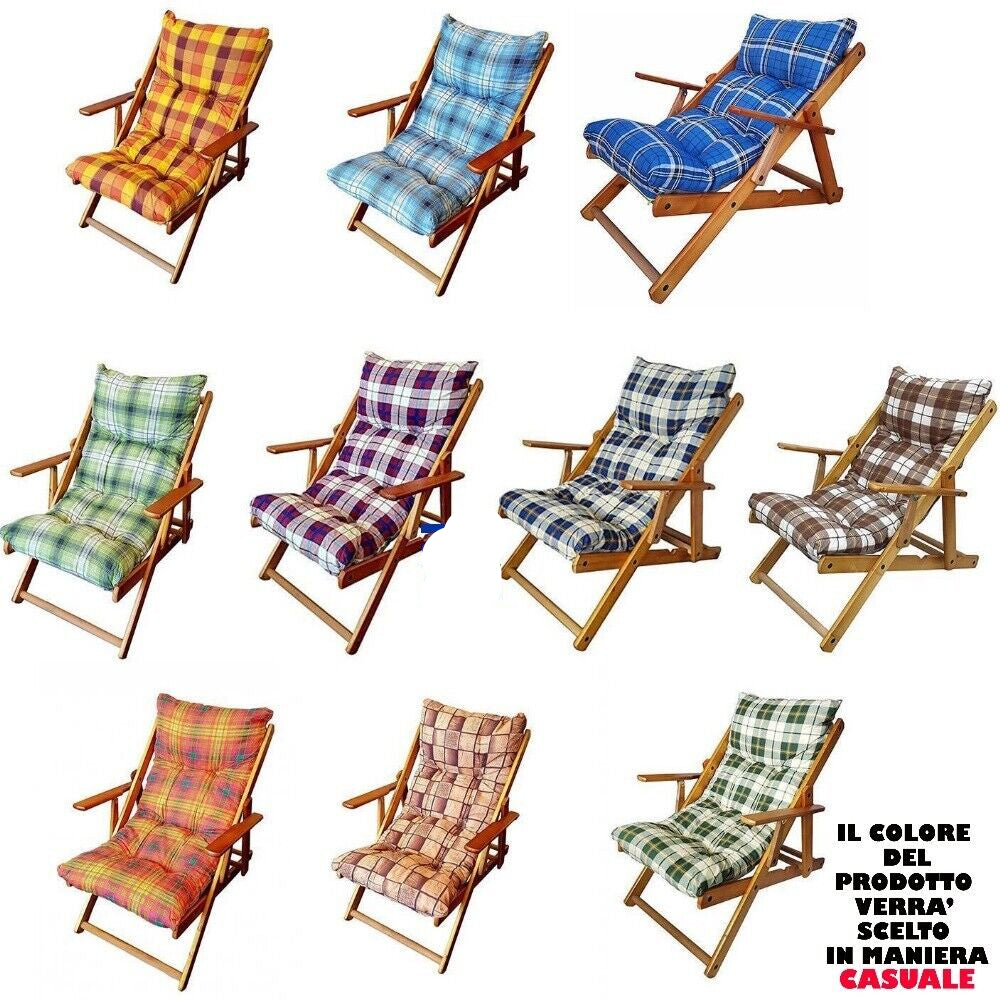 POLTRONA SDRAIO IN LEGNO RELAX IMBOTTITA PIEGHEVOLE REGOLABILE 3 POSIZIONI